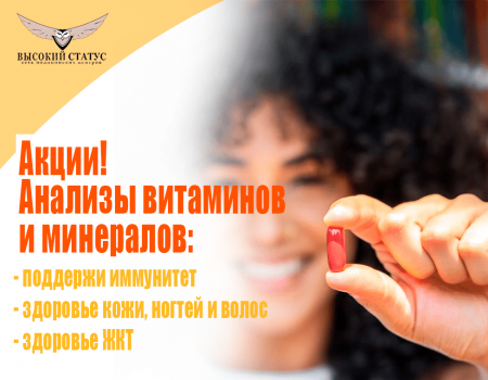 Акции от сети медицинских центров «Высокий статус» на исследование витаминов и минералов, а также консультации врачей-гастроэнтерологов + УЗИ, позволят Вам своевременно и правильно подобрать профилактическое лечение, витаминные комплексны, скорректировать питание и всегда оставаться в хорошей форме.